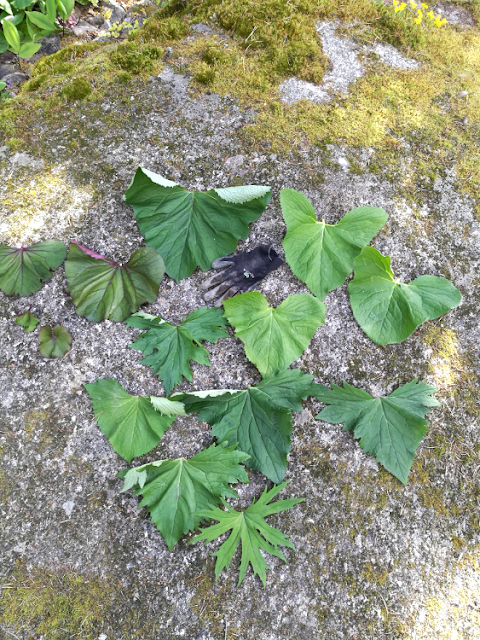 Kiersin ympäri puutarhaa ja keräsin erilaisista nauhuksista lehtiä. Aika hauska kokoelma ja suurin osa on näitä siemenristeymiä. Vain punalehtisiä on tullut ostettua ja pari saatua.